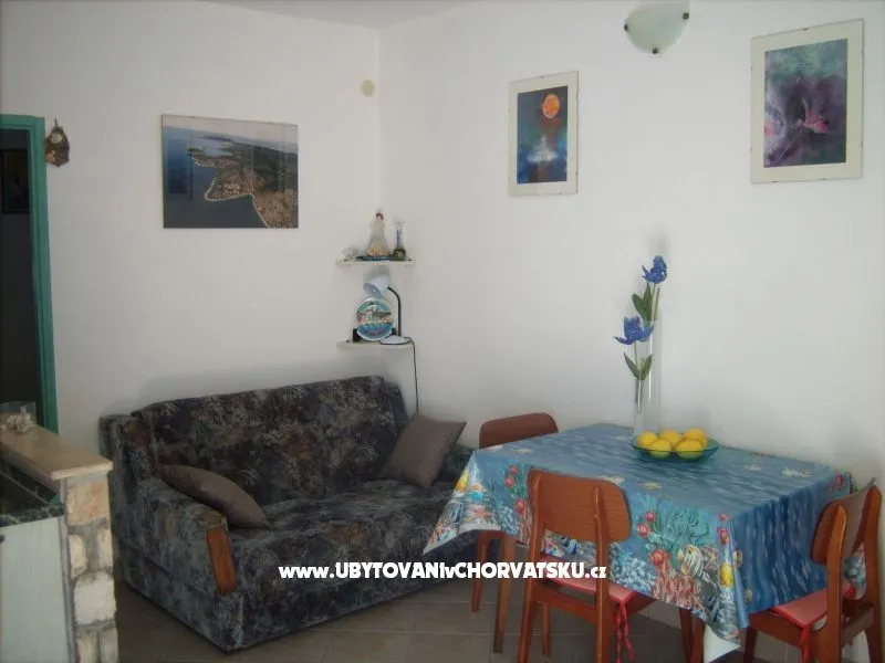 Apartment Blau im Haus,Haus Vjeka in der Bucht Mikulina Luka 2,5 km westlich von Vela Luka auf der Insel.Der Strand ist 30 m vom Meer entfernt. Die Apartments sind idealfür Familien und ruhigen Urlaub