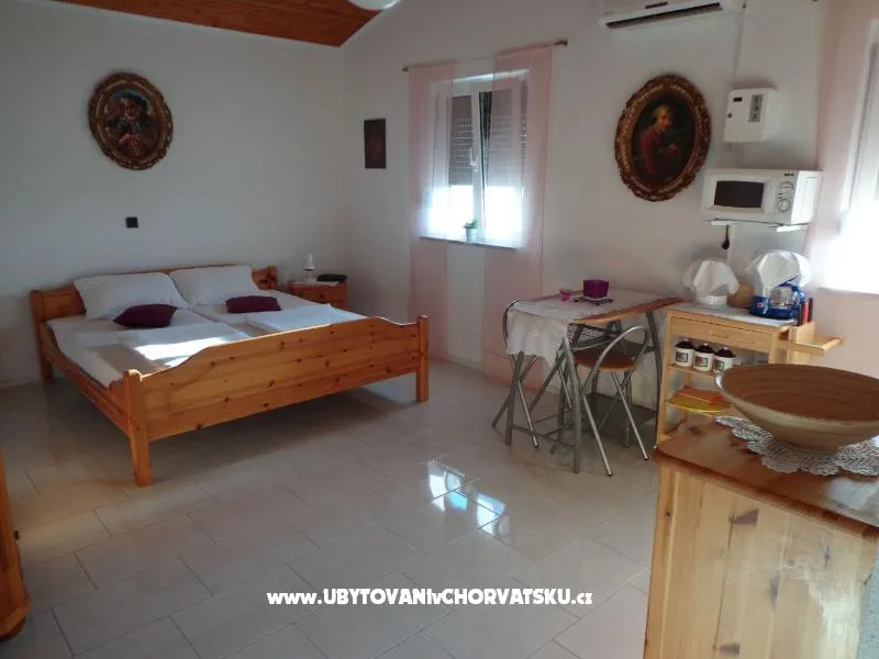 1-Zimmer-Apartment, Kroatien. Ideal für 2 Personen. 150 m zum Sandstrand, Klimaanlage (gegen Aufpreis), großer überdachter Balkon App 1 mit 16m˛, App 2 mit 11m˛. Dusche/WC, Föhn, Safe, bei Buchungen unter 7 Tagen zusätzlich 20% Aufpreis.