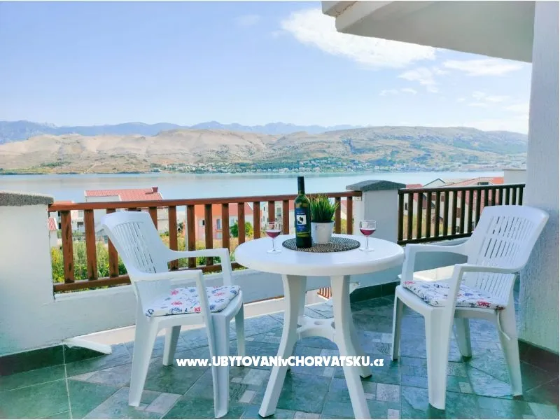 sehr komfortable Wohnungen, geeignet für Familien mit Kindern, von Terrasse und Schlafzimmer haben Sie Meerblick, Stadtstrand und die ganze Stadt Pag Blick. In der Nähe befinden sich mehrere Kies- und Sandstrände und der Stadtstrand.