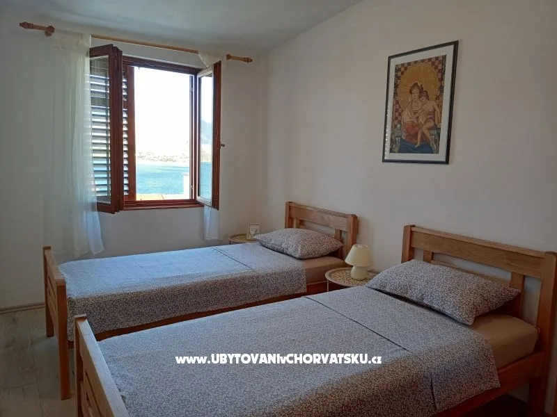 Im ersten Stock, separater Eingang, zwei Schlafzimmer, Küche, Bad und Wohnzimmer. Geräumige Terrasse mit Blick auf die ganze Bucht den Strand und die Pag. Strand 200 m, Stadt 1600, Zrće-Novalja 20 min